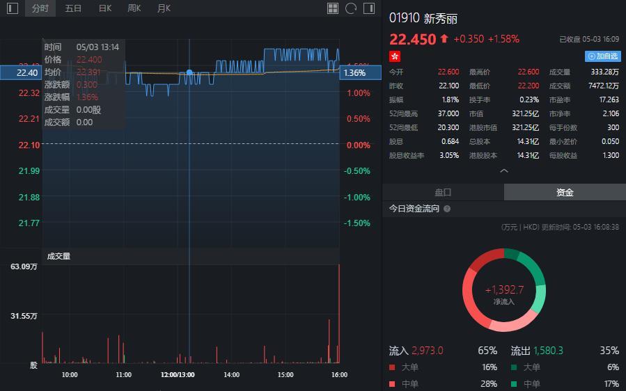 截至今日收盘,新秀丽(01910)涨1.58%,报22.45港元。