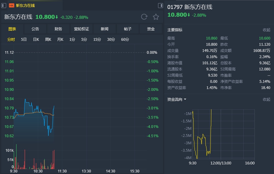 智通财经APP获悉,花旗发表报告称,新东方在线(01797)是内地最大的全面在线教育提供者,首予公司“买入”评级,目标价14.1港元。