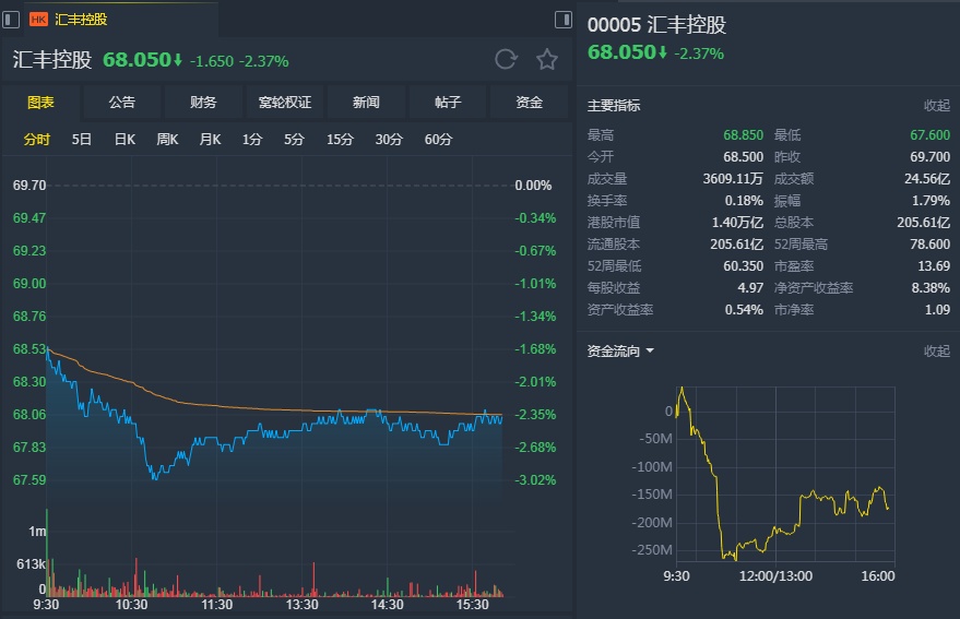 花旗指出,汇控首季净利息收入及净息差表现疲弱,其中首季以报告基准之净利息收入按年持平,按季则跌3%,逊于市场预期3%。至于首季净息差为1.59%,按年下跌8个基点,按季下跌4个基点。