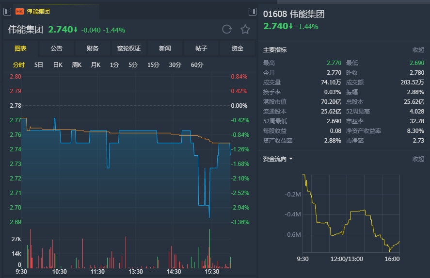 智通财经APP获悉,花旗发表研究报告指出,伟能(01608)去年净利润按年下跌35.7%至2.13亿元,逊于该行及市场预期,花旗已调低其2019-2020年度净利润预测36-39%,以反映利润率减少及调高融资成本的影响,目标价亦降低17.14%至2.9港元,续予“中性”评级,认为估值不吸引。