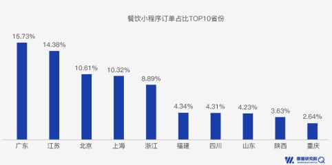 在餐饮行业,广东人“最会吃”,广东地区餐饮小程序订单占比15.73%,领先全国其他省份。从品类来看,江浙菜最受小程序用户欢迎,订单量占比为15.0%,而西餐的客单价最高,订单量占比仅为6.1%,成交额占比则达到18.4%。分析还发现,周六周日餐饮消费最旺,GMV占比超3成。