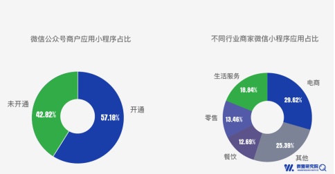 2、微信公众号商户超一半开通小程序,企业营销意愿强