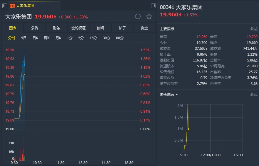招银国际认为,市场避险意识骤增,防守股获资金流入。大家乐在香港及内地从事连锁餐饮业务,以快餐为主,香港市场占收入逾七成。快餐需求稳定,于经济疲弱时甚至有更多需求,同时租金成本趋降。今年一季度香港GDP同比增速仅0.5%,创近十年新低,但餐饮零售表现不俗,首1-2月同比减少1%后,3月份增速反弹至3.5%,而3月份整体零售同比跌0.2%。
