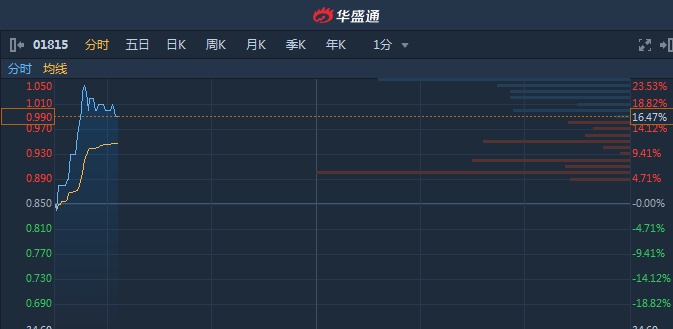 智通财经APP获悉,金猫银猫(01815)拟溢价76.47%向姚润雄增发1亿股,且向新员工持股计划参与者发行8428.7万股。此消息刺激股价大幅上扬,盘中一度涨超22%,截至10时05分,涨16.47%,报价0.99港元,成交额200.2万。