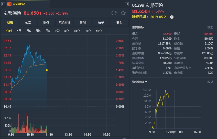 智通财经APP获悉,摩根士丹利发表报告称,预计友邦保险(01299)旗下香港地区新业务价值增长料约15%,由于去年首季基数高,预计表现有所放缓。目标价为91港元,维持“增持”投资评级。