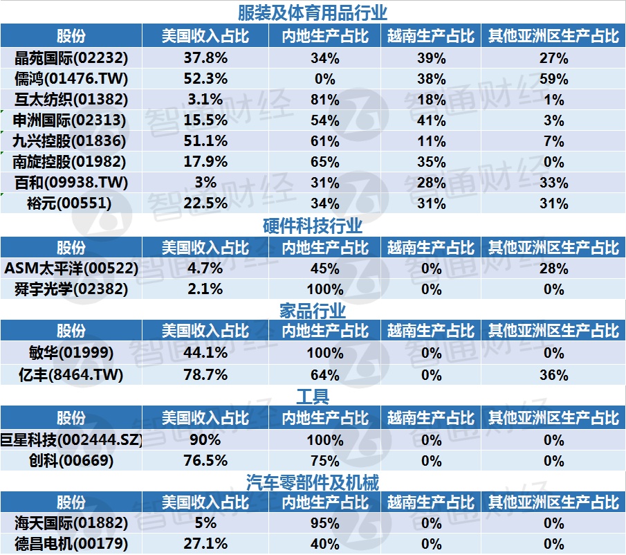 该行同时列出部分拥有美国业务的大中华地区股份在内地、其他地区生产占比预测: