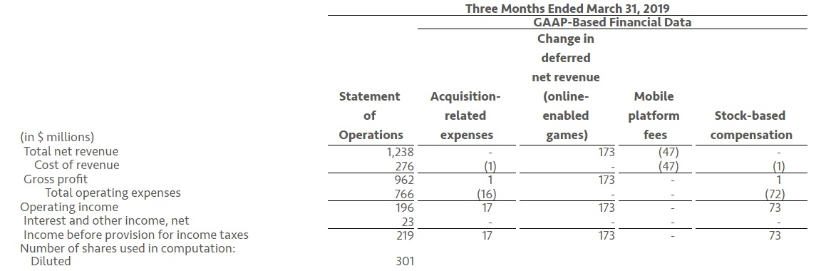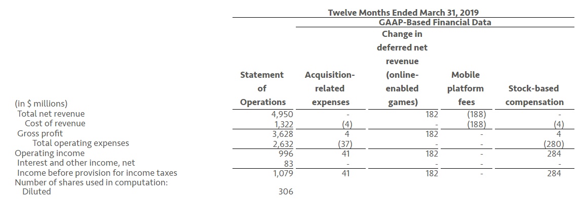 智通财经APP获悉,美国艺电(EA.US)公布了截至2019年3月31日的第四财季和2019财政年度的初步财报。该公司Q4总净营收12.38亿美元,总利润9.62亿美元,营运支出7.66亿美元,经调整EPS为1.31美元,市场预期0.96美元。;2019财年总净营收49.5亿美元,总利润36.28亿美元,营运支出26.32美元。