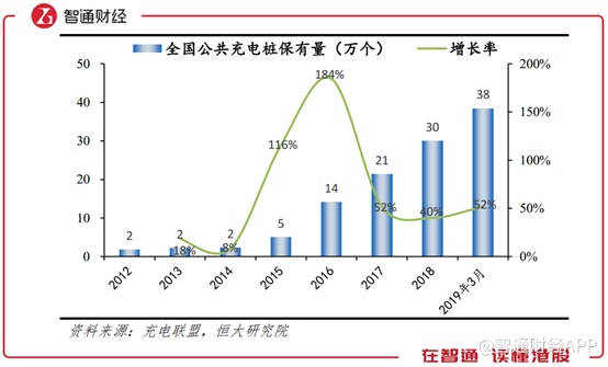 2015年,国家能源局发布《电动汽车充电基础设施发展指南(2015-2020年)》指出,到2020年规划新增分散式公共充电桩50万个,而截止2019年3月,这一数字为38.4万个,且新发布的将车辆购置补贴转为充电桩补贴的文件,将促使这一目标按时完成。