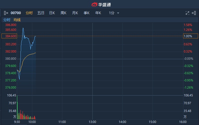 智通财经APP获悉,腾讯(00700)早盘低开后直线拉升,成功翻红,涨幅超1%。