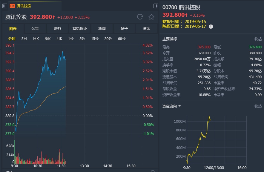 智通财经APP获悉,大和证券表报告表示,重申腾讯(00700)“跑赢大市”评级,未来12个月目标价435港元,此相当预测2019年至2020年平均市盈率33倍,建议投资者可借回调进行收集。