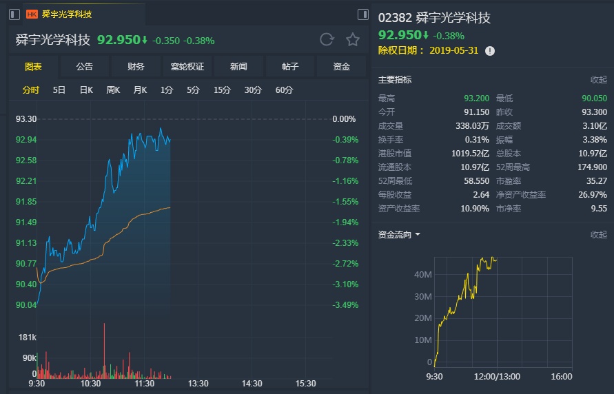 该行预料,舜宇于2019年至2021年毛利率年均复合增长率放缓至15%,对比其2016年至2018年毛利率年均复合增长率为35%。