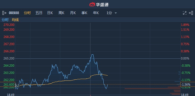 智通财经APP获悉,港交所(00388)首季度股东应占溢利同比增2%至26.08亿港元,胜预期。但午后该股股价倒跌,截至13时34分,跌1.36%,报价261.6港元,成交额7.875亿。