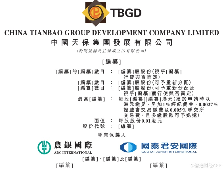 智通财经APP获悉,中国天保集团发展有限公司向港交所递表,该公司注册于开曼群岛,农银国际和国泰君安国际为联席保荐人。
