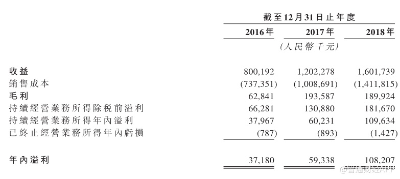 据智通财经APP了解,天保集团的总收益由2016年的8.00亿元人民币增至2018年的16.01亿元人民币,2016年至2018年的复合年增长率为41.5%;毛利由2016年的6284.1万元人民币增至2018年的1.89亿元人民币,2016年至2018年的复合年增长率为73.9%;纯利由2016年的3718万元人民币增至2018年的1.08亿元人民币,2016年至2018年的复合年增长率为70.5%。