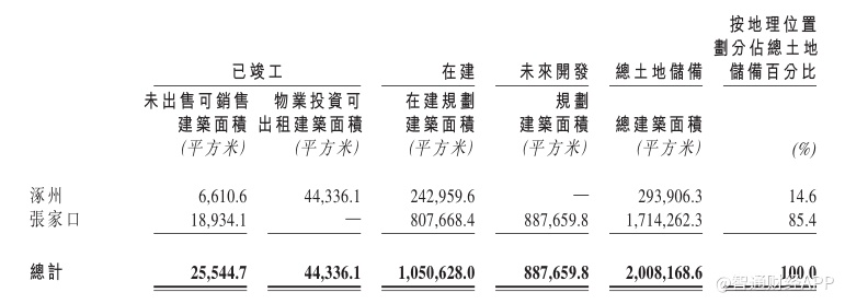 下表载列截至2019年3月31日,天保集团按地理位置划分的土地储备建筑面积的明细: