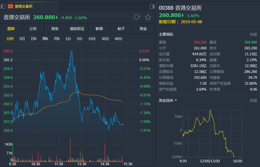 不过,该行指出港交所收入胜预期是由于受到期内投资收益好过预期推动,若扣除投资收益后的收入则低于预期3%,因交易、结算及存讬费令人失望,因此维持港交所“中性”评级,目标价280港元。