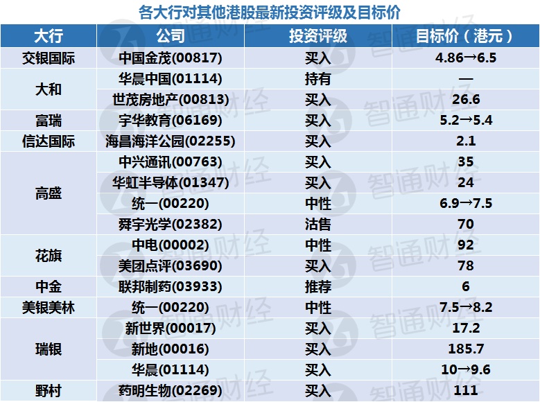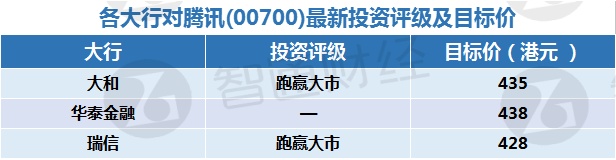 二、各大行对腾讯(00700)最新投资评级及目标价: