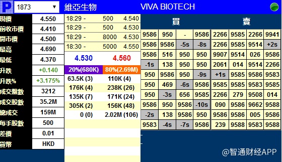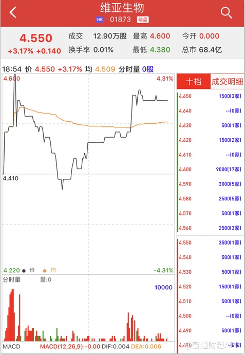 智通财经APP获悉,维亚生物(01873)将于5月9日挂牌,上市前夕,其暗盘收报4.55港元,较招股价4.41港元,涨3.175%。每手500股,不计手续费,每手赚70港元。