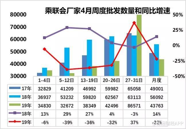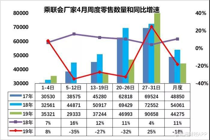 根据不完全统计的厂家零售数据看,全月零售增速在-18%。目前看全月的增长应该稍弱于3月走势,实现相对偏弱的平稳增长。