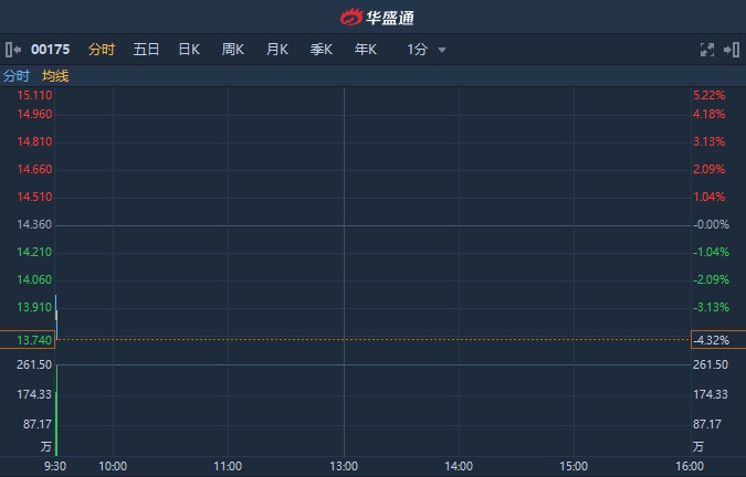 智通财经APP获悉,吉利汽车(00175)早盘低开低走,截至9时30分,跌4.32%,报13.74港元,成交额达6103万港元。