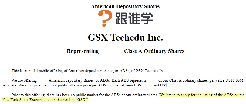 智通财经APP获悉,北京时间5月8日,K12在线教育机构“跟谁学”正式向美国证监会(SEC)公开递交招股说明书。公司拟申请ADSs在纽约证券交易所(NYSE)上市,代码为“GSX”。
