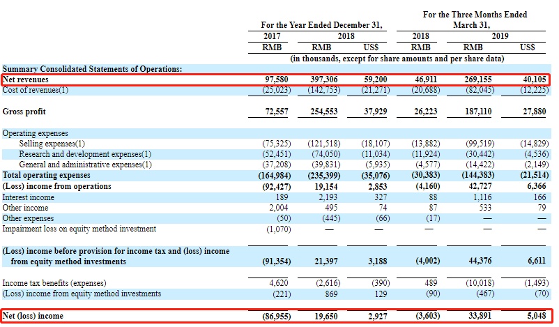 招股书显示,公司的核心业务持续健康增长为其产生了充沛的现金流。2018年non-GAAP现金净收款总额为6.55亿元,同比增长438%;2019Q1现金净收款总额为3亿元,同比增长392%。