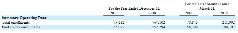 资料显示,公司的课程覆盖所有小学和中学年级,在2018年和截至2019年3月31日的三个月里,分别占总收入的73%和75%以上。