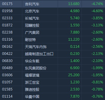 智通财经APP获悉,据乘联会发布的数据显示,4月国内乘用车零售同比降18%,不及市场预期,早盘汽车股全线走弱。截至9时42分,吉利(00175)跌4.74%,报价13.68港元,北京汽车(01958)跌4.6%,长城汽车(02333)跌3.85%,华晨中国(01114)跌0.76%。