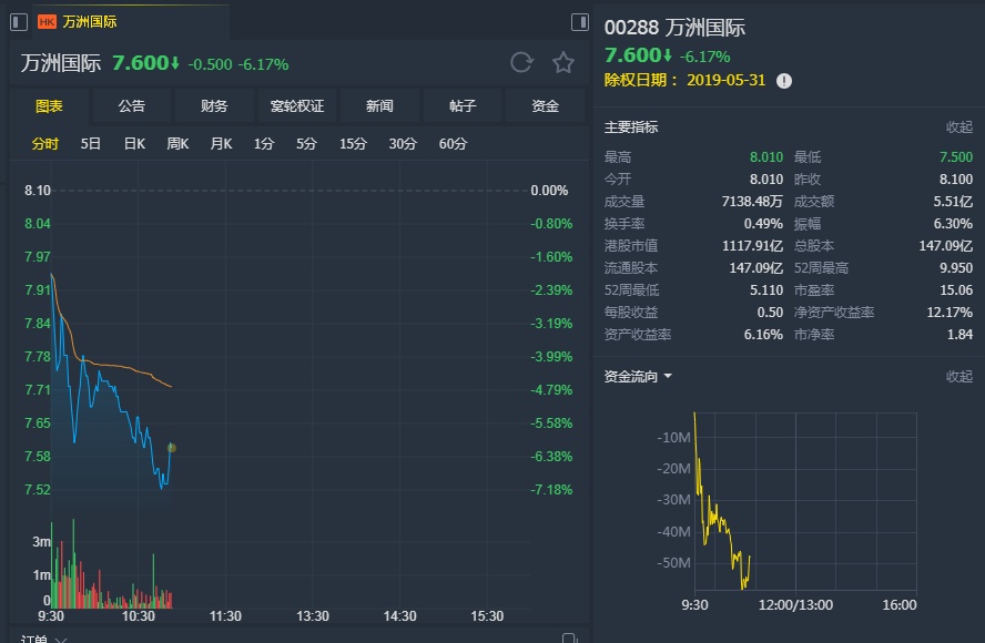 智通财经APP获悉,花旗发研究报告,重申万洲(00288)“沽售”评级,目标价6.94港元,即较昨日收市价8.1港元,有下行约14%的空间。