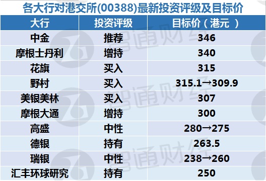 二、各大行对港交所(00388)最新投资评级及目标价: