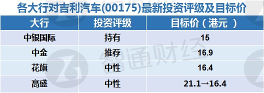 三、各大行对吉利汽车(00175)最新投资评级及目标价: