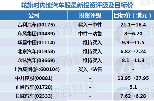 四、花旗对内地汽车股最新投资评级及目标价: