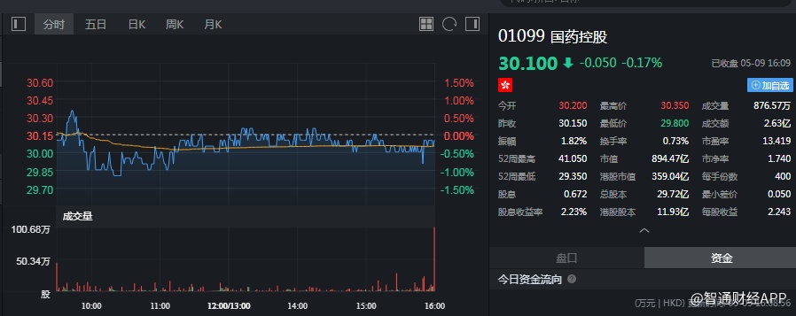 截至周四收盘,国药控股(01099)跌0.17%,报30.1港元。