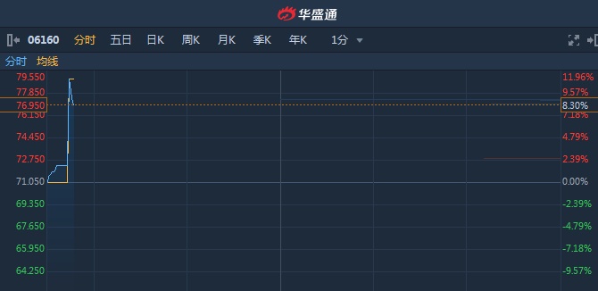 智通财经APP获悉,百济神州-B(06160)今日早间公布首季业绩,总收入同比增1.39倍至7783.3万美元,净亏损同比扩大59.9%至约1.68亿美元。截9时43分,涨8.37%,报价77港元,成交额87.64万。