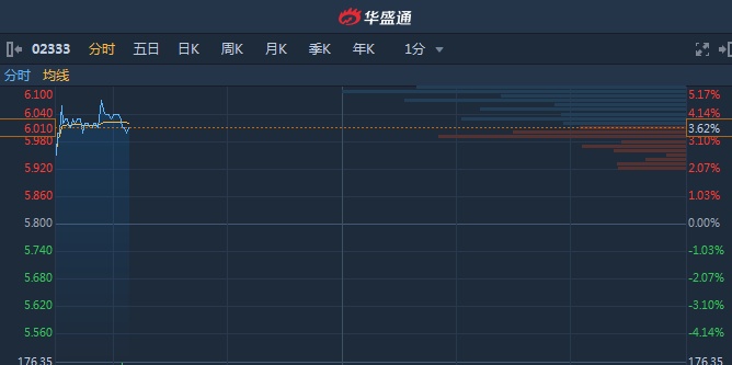 智通财经APP获悉,长城汽车(02333)昨日盘后公告显示,4月实现销量8.38万辆,同比增长2.5%,前四个月累计销量同比增8.65%至36.77万辆,截至10时07分,涨3.62%,报价6.01港元,成交额8228万。