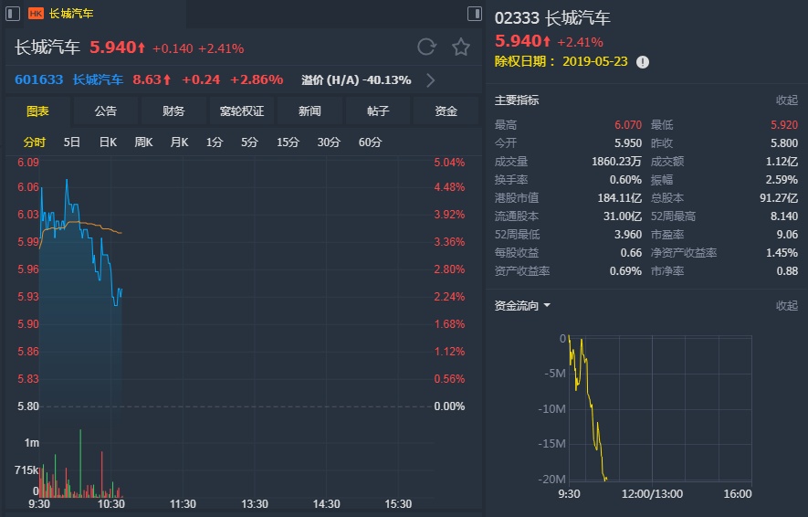 瑞信预期,6月底内地将推出汽车刺激政策,将利好低档汽车如中国本地品牌,相信香港上市汽车股中,长城汽车会是最大受惠股,目标价6.5港元,评级“跑赢大市”。该股最新报6.06港元,升4.48%。