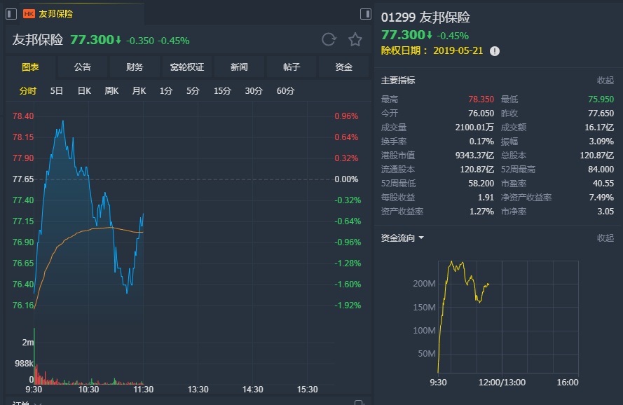 该行指出,友邦股价表现于今年较为强劲,累升20%,同期恒指仅升10%,主要受其内地业务进展所支持,因此相信首季表现虽令市场失望,但不会造成股价调整,市场预计2019-2021年集团仍能保持20%之新业务价值增长。该行建议于未来12-24个月增持,因中国市场全面开放将带来增长及提升盈利透明度。重申友邦“增持”评级,目标价105港元。