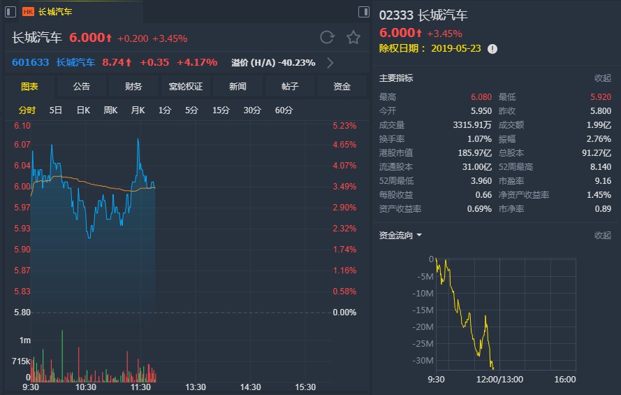 该行指出,公司于4月推出新车型F7x,针对年青客人,相信可支持F系列的稳定销售。不过该行认为销售上升也不能够抵消集团加大折扣额的负面影响,认为目前进行的折扣活动,会蚕食公司的品牌价值和未来的定价能力,未来盈利会有下行风险,维持股份“跑输大市”评级,目标价3.4港元。