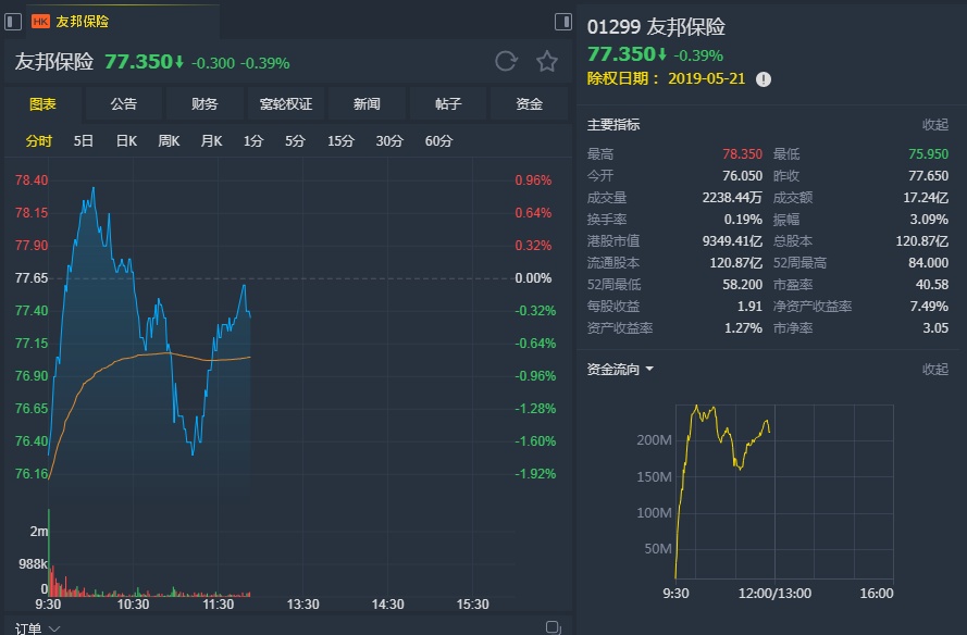 报告指出,友邦(01299)首季新业务价值低于该行预测4%及低于普遍市场预测。虽然内地市场增速仍最快,不过也低于该行预期,主要由于利润率按年收窄。基本营运情况仍然强劲,尤其是内地市场,预计友邦中国全年仍能维持强劲增长势头。香港市场获得强劲双位数增长,符该行预期,且来自本地客人及内地客的增长同样强劲。