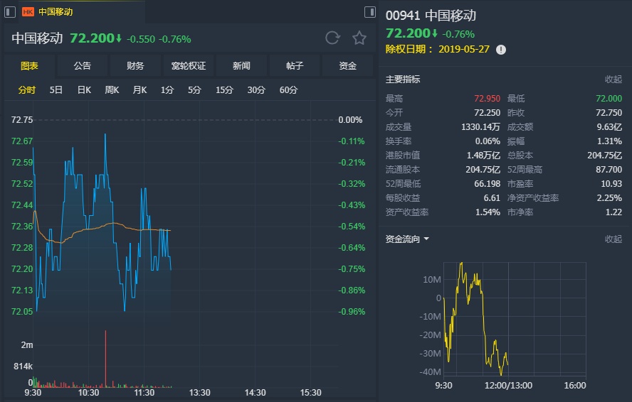 智通财经APP获悉,美银美林发表研究报告,认为中移动(00941)的价值相对同业被低估,现时股息率达3.9%,因此维持股份“买入”评级,目标价102港元。