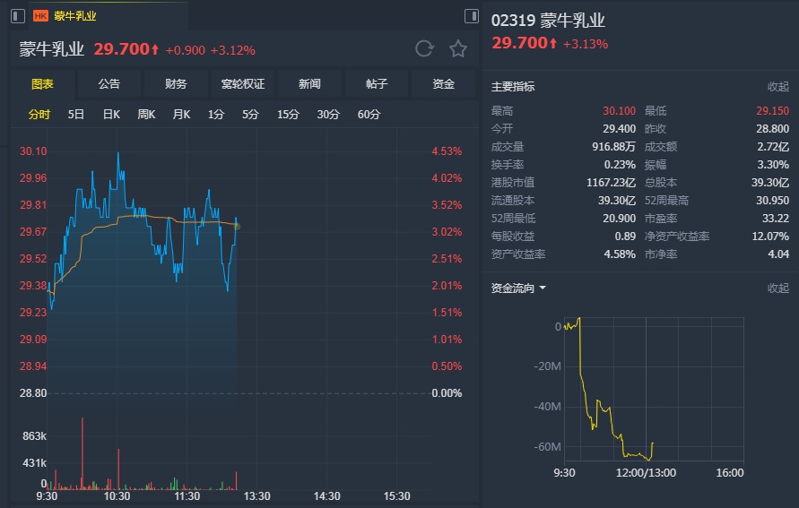 该行相信,蒙牛自公布业绩以来股价跑赢恒生,反映市场对其鲜奶业务的预测,相信相关有利因素已反映。