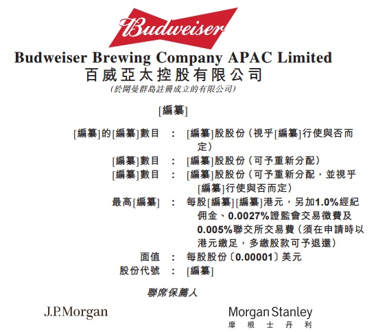 智通财经APP获悉,据港交所5月10日披露,百威亚太控股有限公司向港交所递交上市申请,摩根大通及摩根士丹利为其联席保荐人。