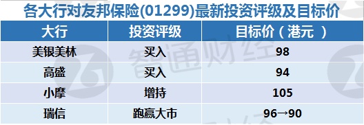 四、各大行对友邦保险(01299)最新投资评级及目标价: