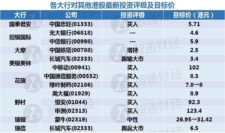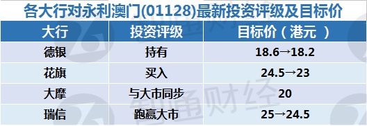 五、各大行对永利澳门(01128)最新投资评级及目标价: