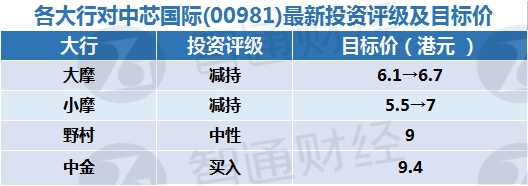三、各大行对中芯国际(00981)最新投资评级及目标价: