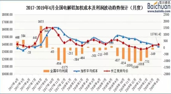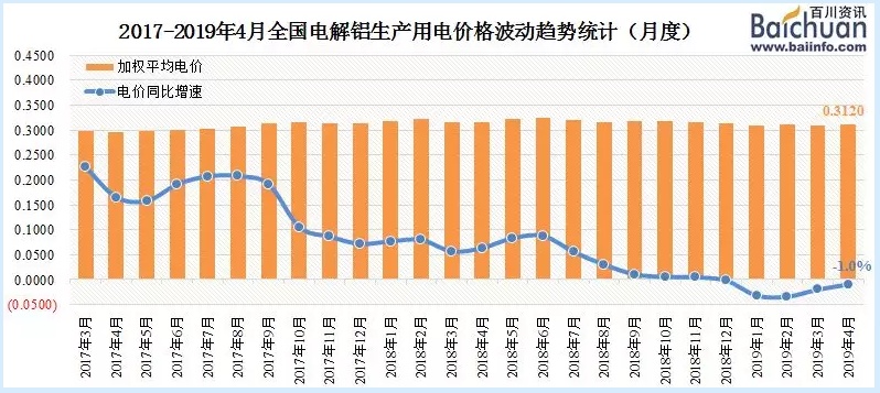 电解铝生产其中最重要的成本是电价。按照百川资讯的数据,电价在最近几个月的开始同比出现下降。