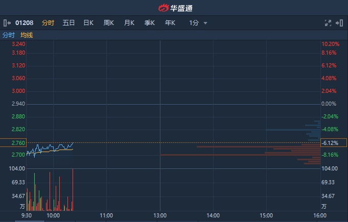 智通财经APP获悉,五矿资源(01208)早盘跳空低开后,略有拉升,低见2.76港元创1月31日以来新低,截至10时21分,跌6.12%,报2.76港元,成交额达3456万港元。