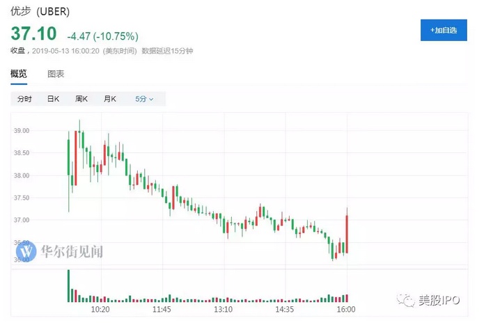 公司上周五IPO首日开盘报42美元,较发行价45美元下跌约6.667%。上市首日收跌7.62%,报收41.57美元。本周一股价继续下跌,盘中最低触及37.08美元,较45美元/股发行价跌17%。在大跌后,Uber CEO不得不发布公开信安抚员工及市场。