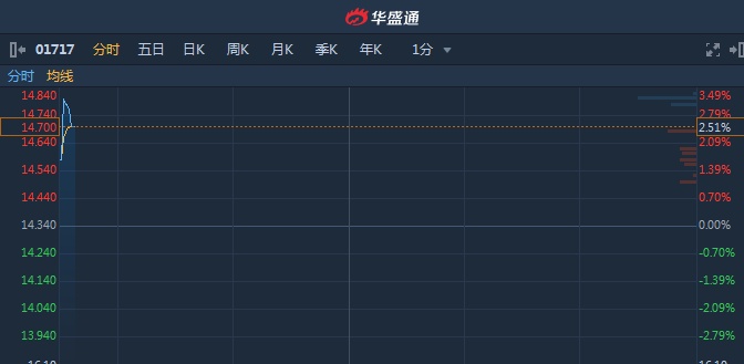 智通财经APP获悉,澳优(01717)昨日盘后发布首季度业绩,经调整股东应占溢利同比增87.2%至1.945亿元人民币。此消息刺激股价上扬,截至9时37分,涨2.51%,报价14.7港元,成交额612.8万。