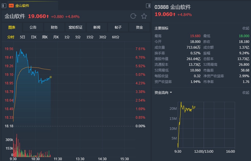 报告指出,金山软件首季云业务收入倍增至8.39亿元人民币,表现好过预期,占整体收入48%,管理层将2019年度云业务收入增长指标由60%调高至70%,云业务利润率亦胜预期,不过,由于市场竞争激烈,长远而言对云业务前景仍然维持审慎看法。
